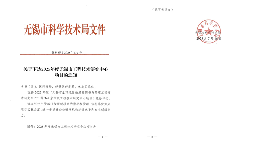 近日,无锡市科学技术局正式发布2025年度无锡市工程技术研究中心项目认定名单。经评审,米兰体育申报的项目成功入选!